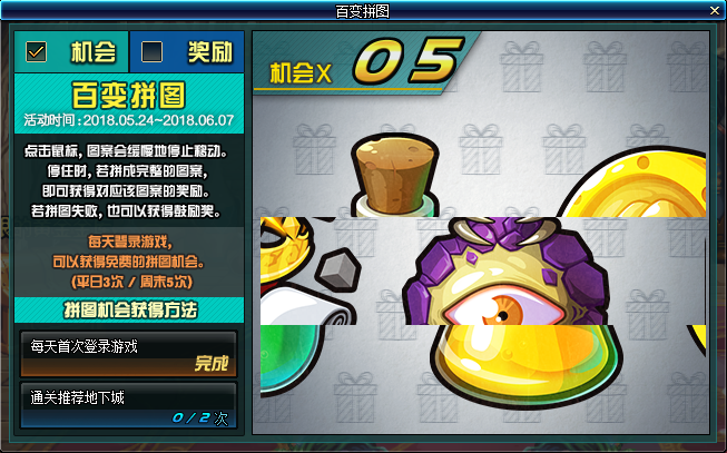 自5月24日起,DNF官方将会推出百变拼图活动,该活动奖励丰富,例如经验胶囊、复活币等等,大家千万不要错过。下面小编就为大家带来DNF5月百变拼图活动介绍,一起来看看吧。DNF5月百变拼图活动介绍 活动时间:2018-05-24至2018-06-19活动奖励: