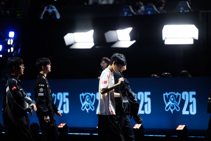 这种想法一直持续到遇见T1为止。又是一场打满五局的比赛,又是决胜局的折戟沉沙。AL这边选出炸弹人加卡牌,一套在前中期不容有失的阵容,而另一边的T1则掏出了金克丝和牛头。比赛时间定格在29分3秒。T1以29:5的大比分差距成功阻挡AL继续前进的脚步。而Gumayusi则为观众们奉上了一场15杀0死的完美金克丝表演。