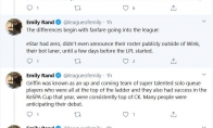 在昨天晚上LPL榜首之争最终ES碾压击败IG登顶LPL,赛后Twitter网友热议本场比赛,将ES和曾经首登LCK赛区的新军GRF作比较,ESPN记者EmilyRand表示ES和GRF是完全不同的队伍。 把ES和GRF拿来比较的原因是这两支队伍对于他们自己的