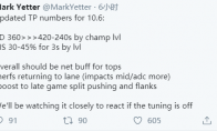 昨日拳头设计师Mark Yetter在推特分享了10.6版本的更新前瞻,今日他又对传送的具体改动做出了说明。原文大意如下: “更新了10.6版本的TP数字冷却时间:360秒>>随着英雄等级在420~240秒内变动随着英雄等级,落地有3秒的30~45