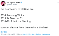 在今天(5月13日)的下午,著名资讯网ESPN撰稿人Fionn发推,提到了他心目中的三支“英雄联盟历史最强战队”,以下是官方原文:2014年S4世界冠军 SSW2015年S5世界冠军 SKT2018年S8世界冠军 iG同时,这名记者在采访iG战队ADC选手Ja