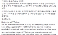 LOL韩国赛区LCK的明星战队KT,因为其实力强大的阵容而被称为银河战舰,下路的Mata和Deft组合也是LCK赛区最为强大的下路阵容之一.而KT战队在S8表现不佳止步八强,KT战队官推刚刚宣布,辅助选手Mata离队. 推文翻译: 大家好这里是KT Rolst