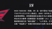 Rogue Warriors(简称:RW)是一家中国电子竞技俱乐部, 于2017年12月15日在上海成立,由ROG(Republic Of Gamers)玩家国度赞助。RW英雄联盟职业战队作为LPL联盟成员之一,将会在2018赛季《英雄联盟》职业联赛(LPL)