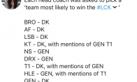 今日,LCK举行2021夏季赛媒体日,各战队监督(教练)预测了2021LCK夏季赛冠军,原文大意如下:每一支战队的监督被要求选出一支最有可能夺得2021LCK夏季赛冠军的队伍:BRO - DKAF - DKLSB - DKKT - DK, 也提到了GEN和T1