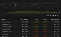 V社在上个月18日推出了《DOTA2》7.28大型更新“永雾林渊”,然而根据Steam Charts统计,《DOTA2》7.28更新后,当月平均在线玩家竟然还减少了0.79%。如上图,在2020年12月,DOTA2的平均在线玩家为42.2万人,相比来说,11月