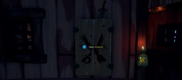 武器商店门口墙壁上可以找到一个军械库 Armoury,里面会有弯刀。