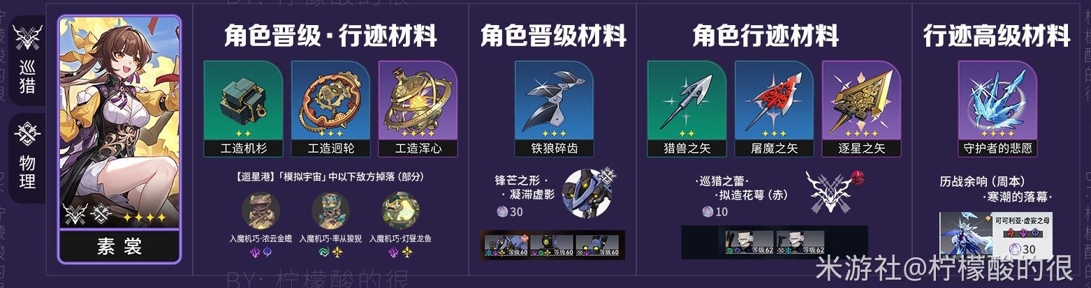 素裳是一名物理属性的「巡猎」命途角色,是一名偏向对单的输出角色,针对物理属性弱点的敌人时表现优秀。那么相信不少小伙伴好奇素裳升级需要哪些材料,下面就来告诉大家。