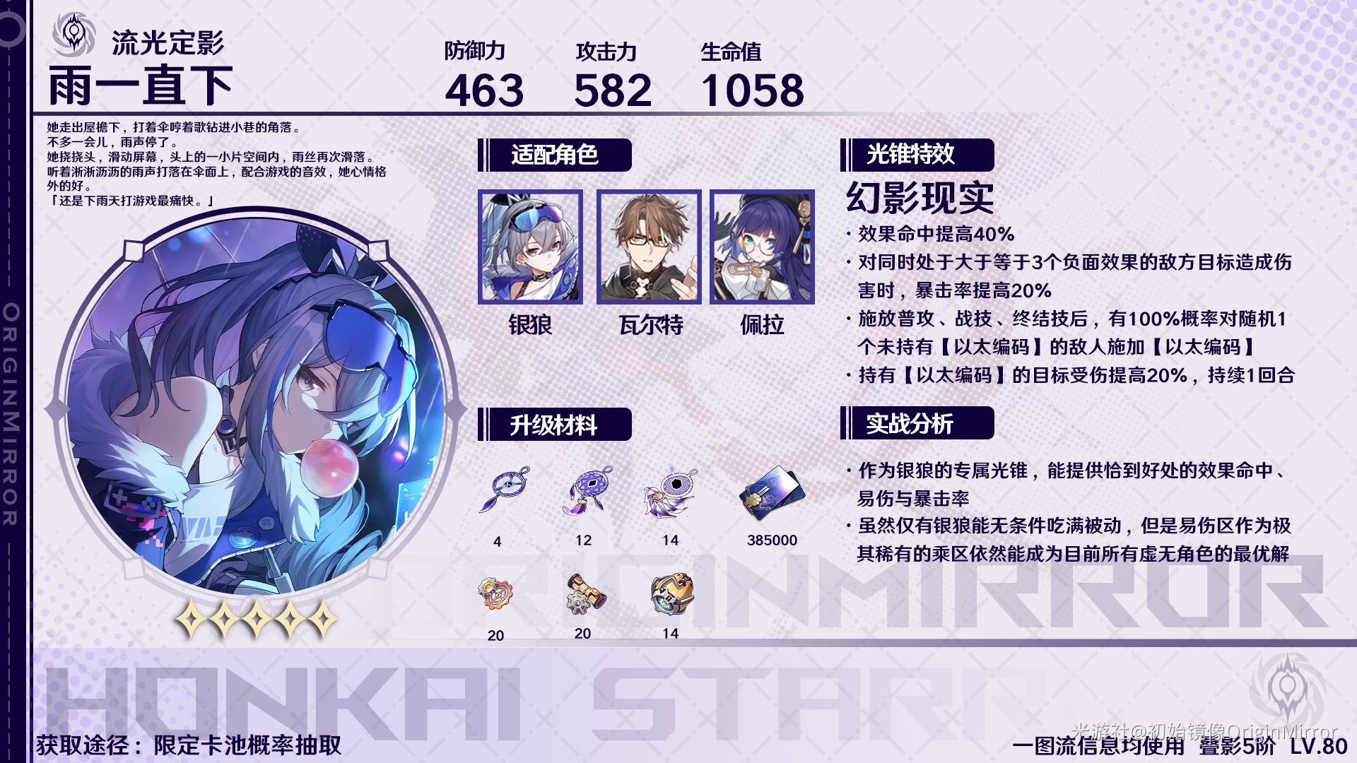 崩坏星穹铁道1.1版本新增了很多光锥,这些光锥都有特殊的效果,其中就包含雨一直下,那么崩坏星穹铁道雨一直下适合谁?下面就给大家带来崩坏星穹铁道雨一直下适合角色推荐。