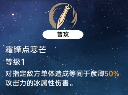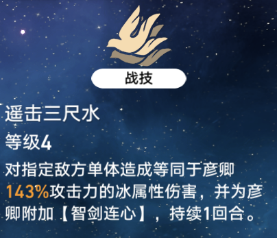 1,单体冰伤,并给彦卿自己上一个叫智剑连心的一回合buff