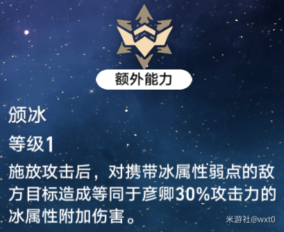 普攻,战技,大招对有冰弱点的敌人多造成一段伤害,增加了对冰弱点敌人的输出