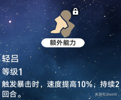 暴击时能提高10%的速度2回合,基本上可以全程触发
