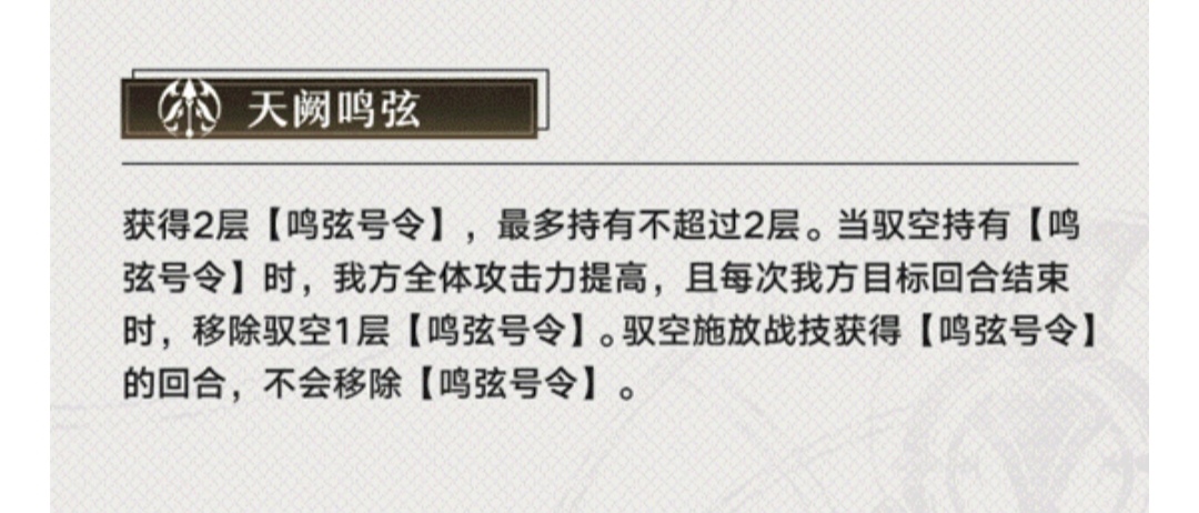 也不容易被控制,也就是说控制效果很难对这这两个角色起作用,而这两个角色几乎固定同时行动,其他两名角色就必然能吃到鸣弦号令的加成。(罗刹奶量足够且鸣弦号令存在期间结界也可以吃到加成,为了主C稳吃还是不给到他了)。