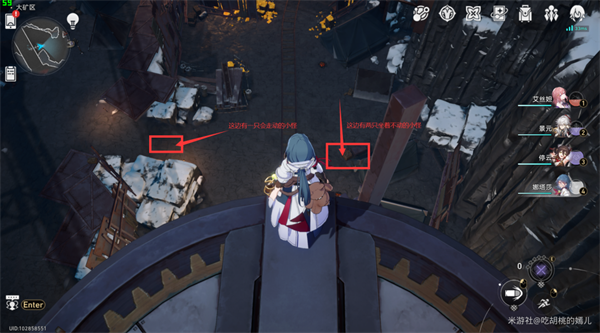 ②站到【电梯】上(如果是下的电梯重新站上去就会往上,不下电梯即可保持高度),可以看到下方帐篷处有一些小怪;