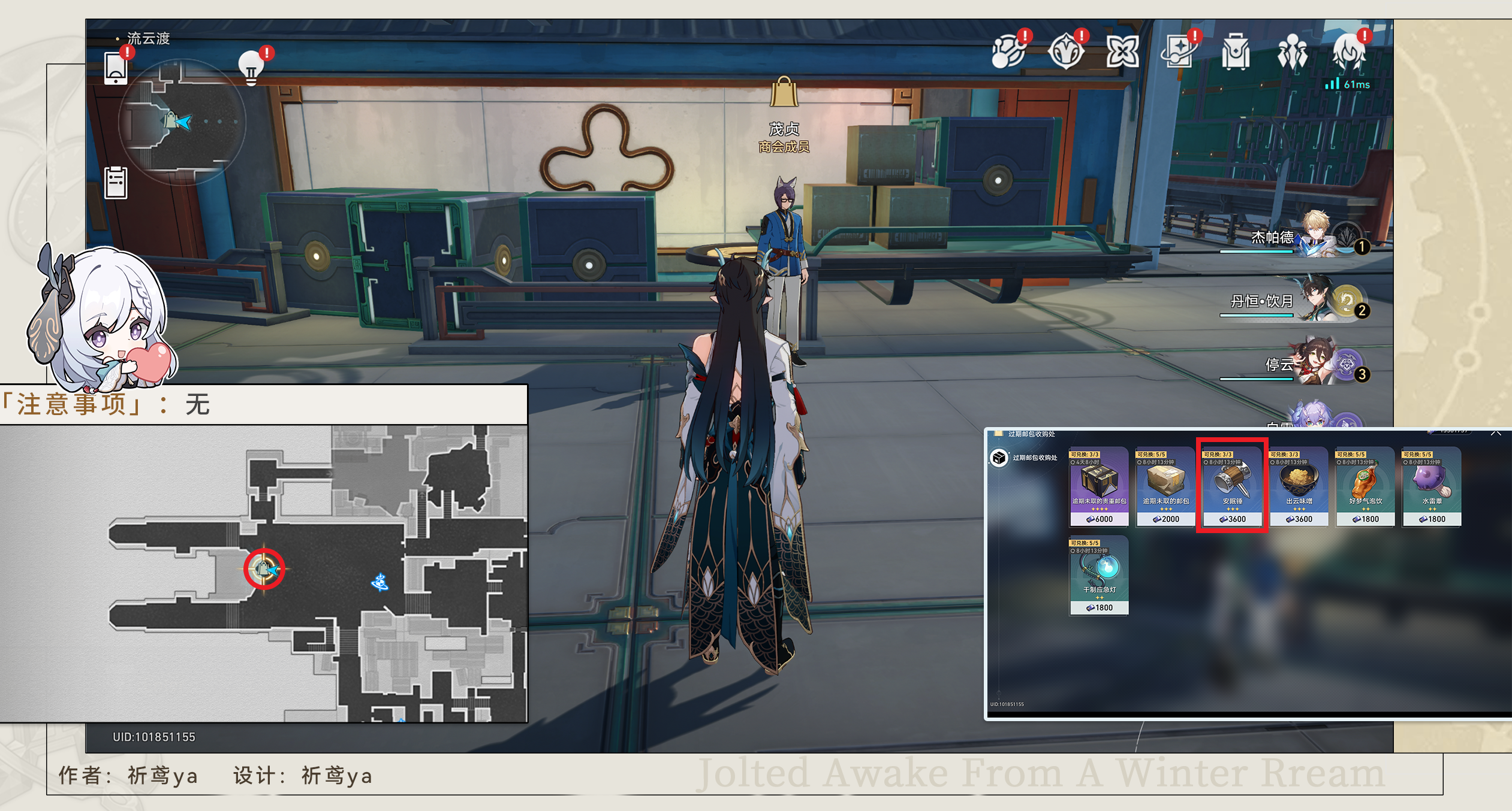(1)我们先来到流云渡,茂贞处可以购买3个安眠锤