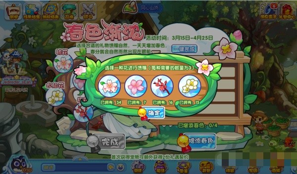 1.洛克王国春色渐浓活动需要玩家收集足够的花朵赠予春分。