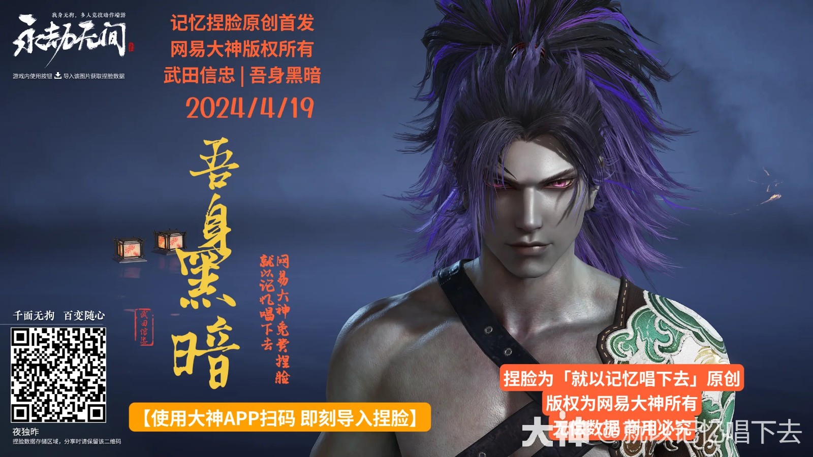 《永劫无间》是由网易旗下“24 Entertainment工作室”开发的一款多人动作竞技游戏,除了对战还有许多其他的玩法,捏脸就是其中之一,小伙伴可以把游戏角色捏成自己喜欢的样子,那么下面就给大家带来武田信忠吾身黑暗捏脸二维码一览。