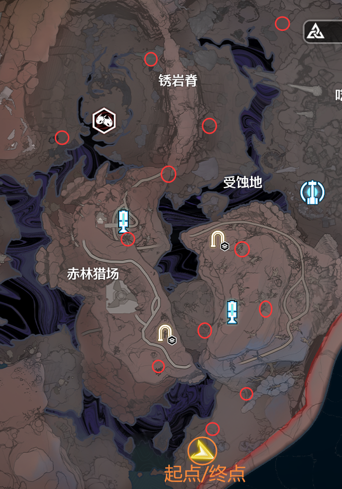图3为起点/终点,所找的呜獭獭石龛会高亮(图4),每一个点位调查后会给宝箱,不要漏拿咯