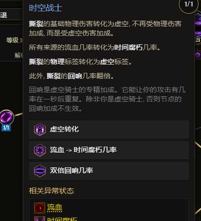 撕裂点出时空战士节点后,转换为虚空伤害,回响几率翻倍,输出先天多了80%more,奠定了崛起之资。
