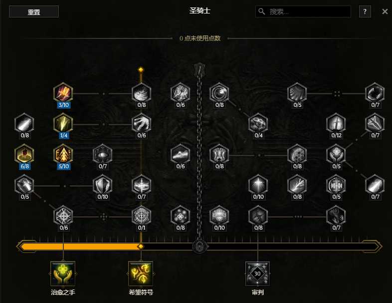 希望印记 自动释放 攻防兼备 大量耐伤阈值加成 大量inc%加成,缺暴击可以扣点耐伤阈值的给暴击率节点