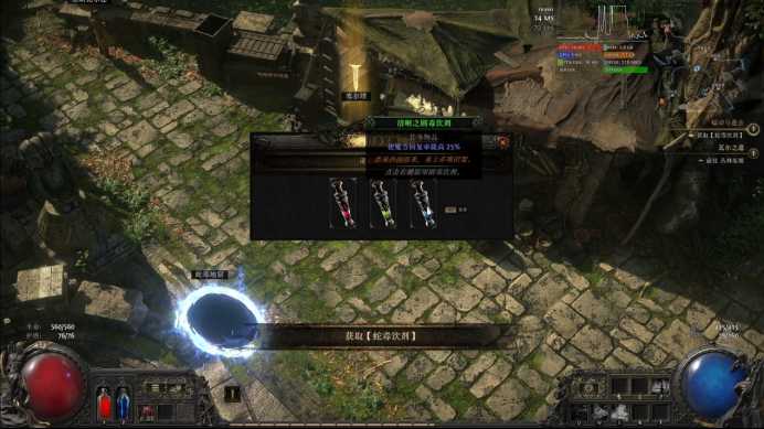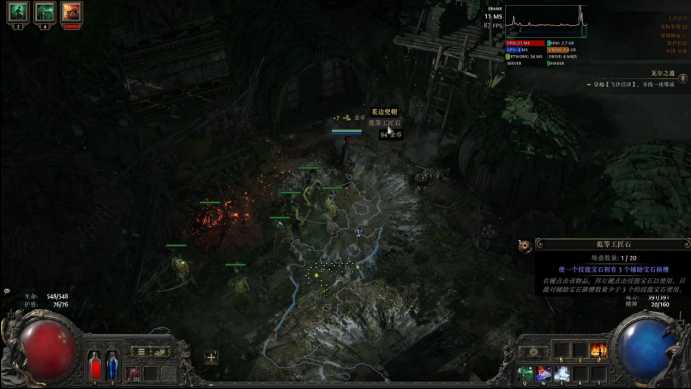将他击败之后,拿出一个目前还算高等级的技能宝石,切出束缚灵体这个技能,并把他放在技能栏里。