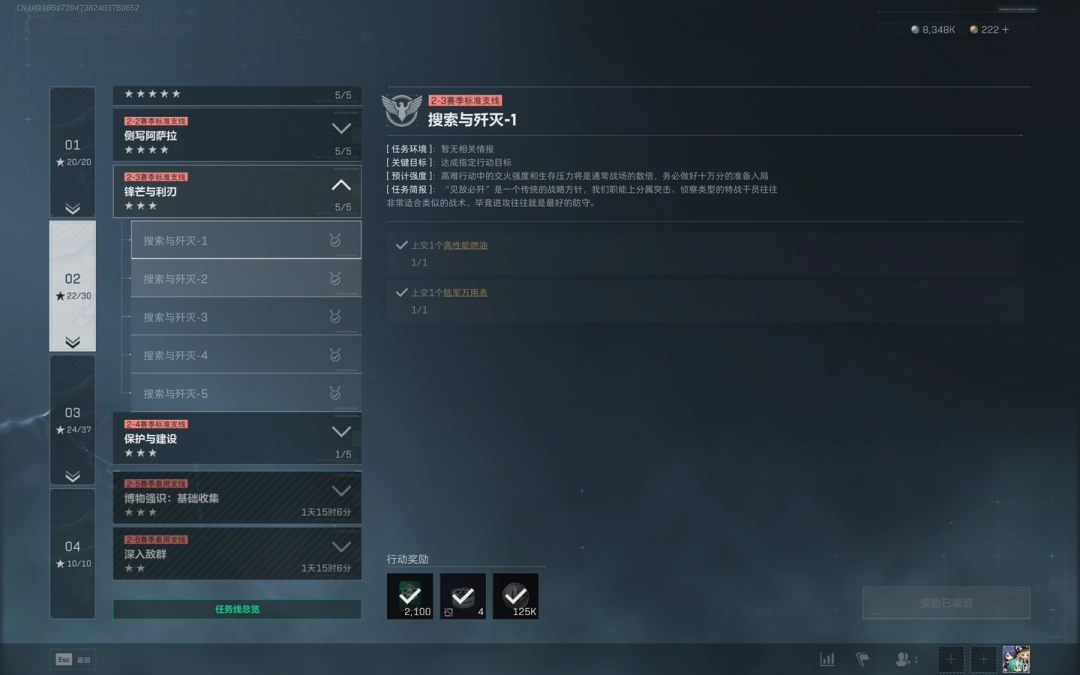 4、任务奖励:经验x2100、高级燃料x4、哈夫币x125000