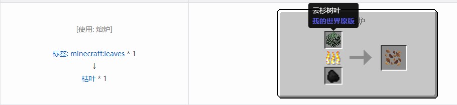 枯叶可以作为燃料使用,一个枯叶可以烧炼 5 秒(0.5 个物品)。