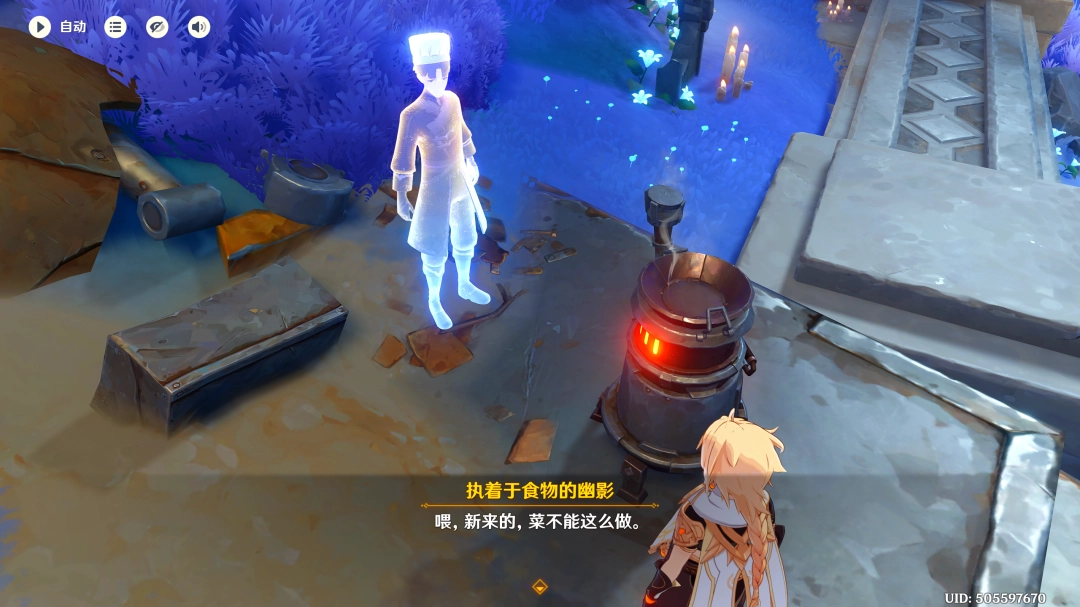 退出烹饪界面后,我们再次与烹饪锅交互,继续烹饪任意一道料理后,退出烹饪界面,即可触发任务「厨子的诉说」