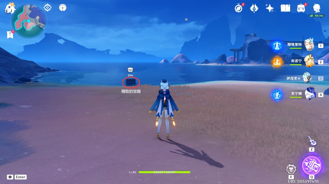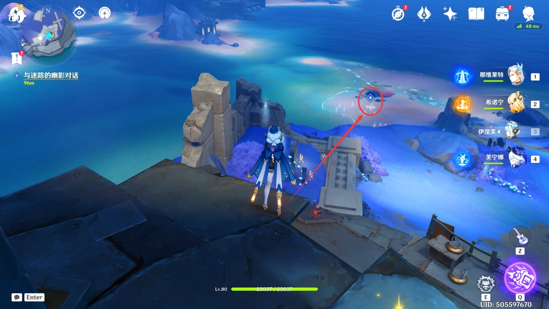这里我们直接飞到海滩,与迷路的幽影对话,即可触发剧情