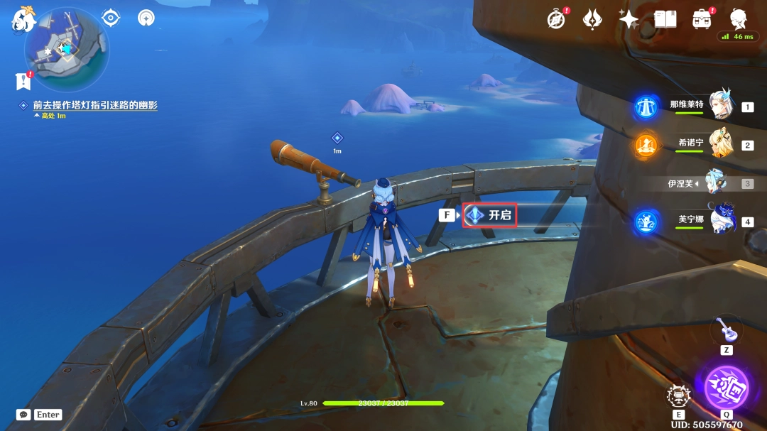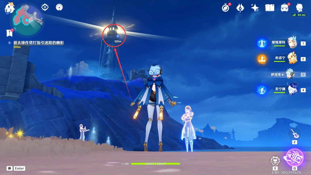 来到此处后,我们与塔灯交互,选择“照向近海方向”-“播放指引信号”,即可触发剧情