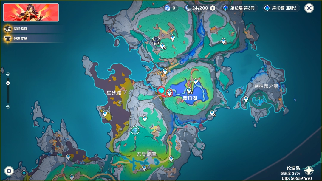 这里我们传送到「蓝珀湖」正西方的传送锚点,来到下图位置