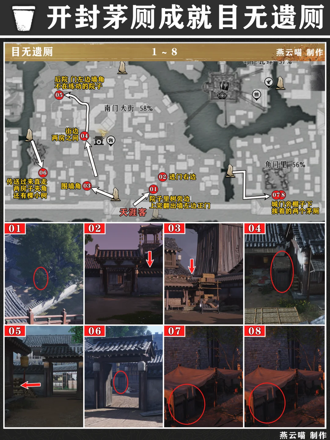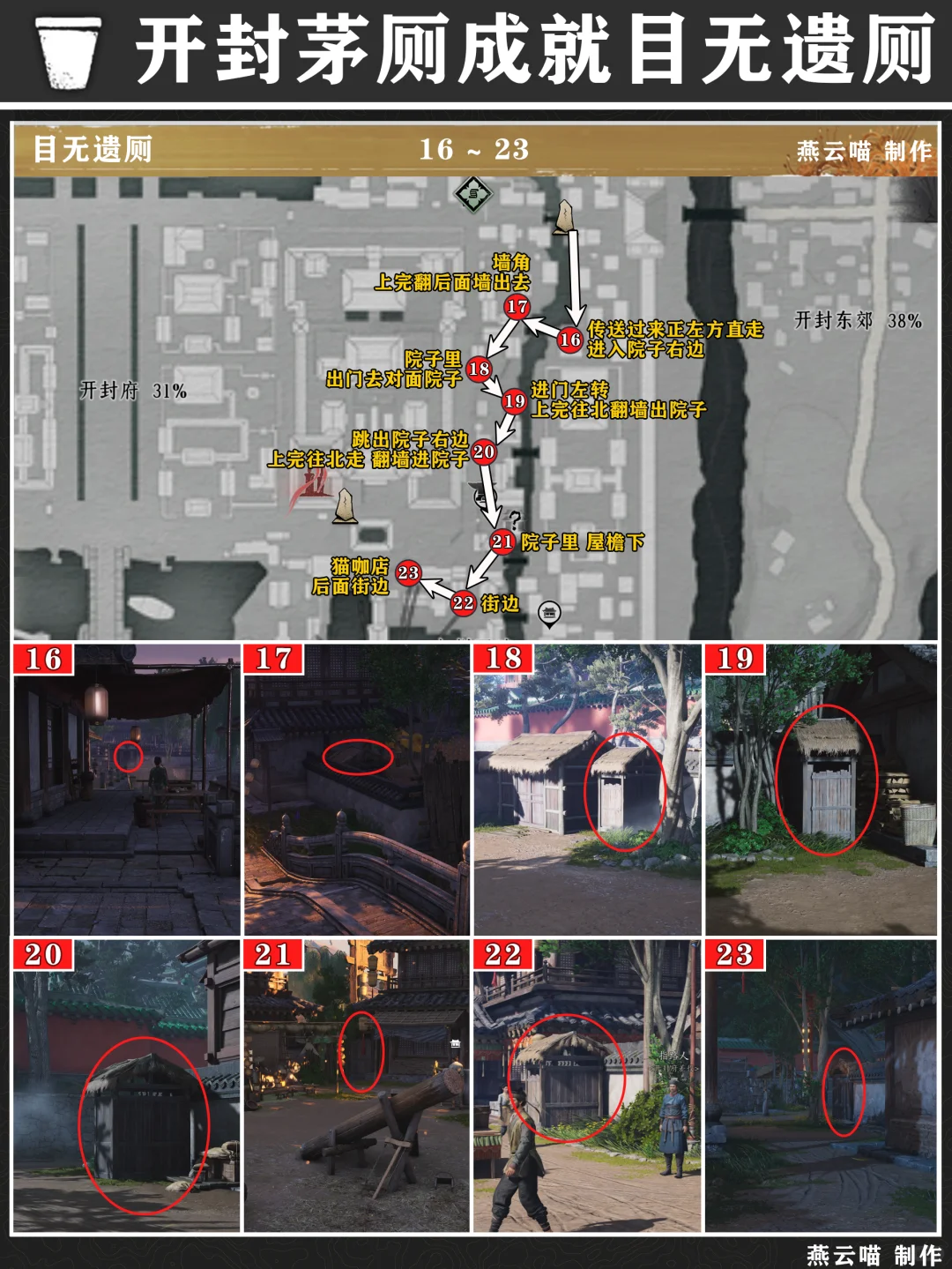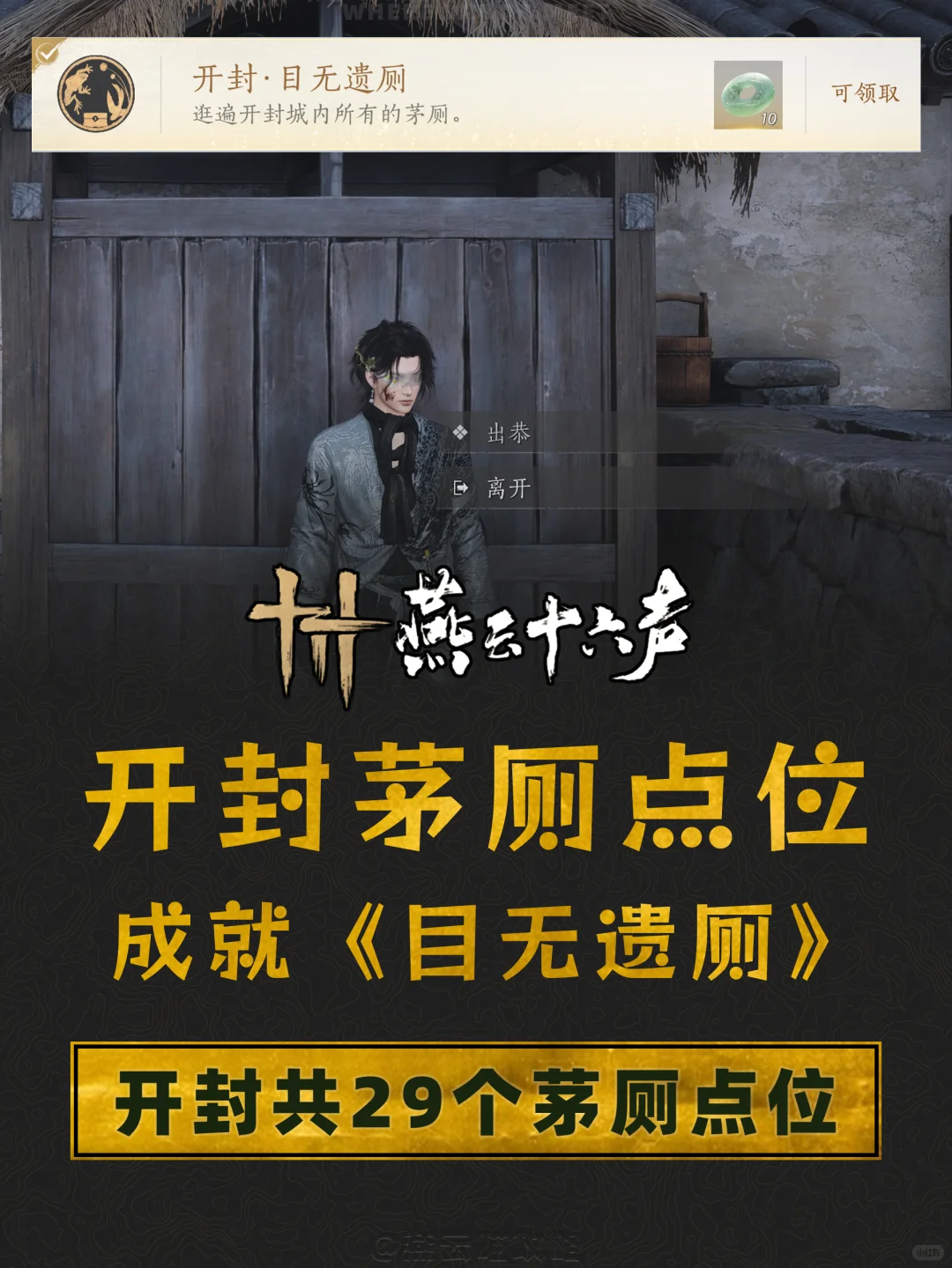 燕云十六声是一款开放世界游戏,玩家可以扮演年轻的侠客在世界游玩,在游戏中有许多不同的成就,完成成就后还能获得奖励,那么有不少小伙伴好奇目无遗厕成就怎么做,下面就来告诉大家目无遗厕成就攻略。