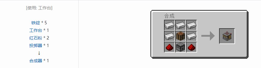 合成器是一种在接收到红石信号时自动合成并丢出产物的方块。
