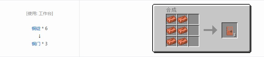 我的世界游戏里面的铜门作用介绍:是一种门,与木门一样可以直接开关铜门,铜门与其他铜类方块一样,都会氧化,都可以涂蜡,铜门与木门有着相同的机制和特性。