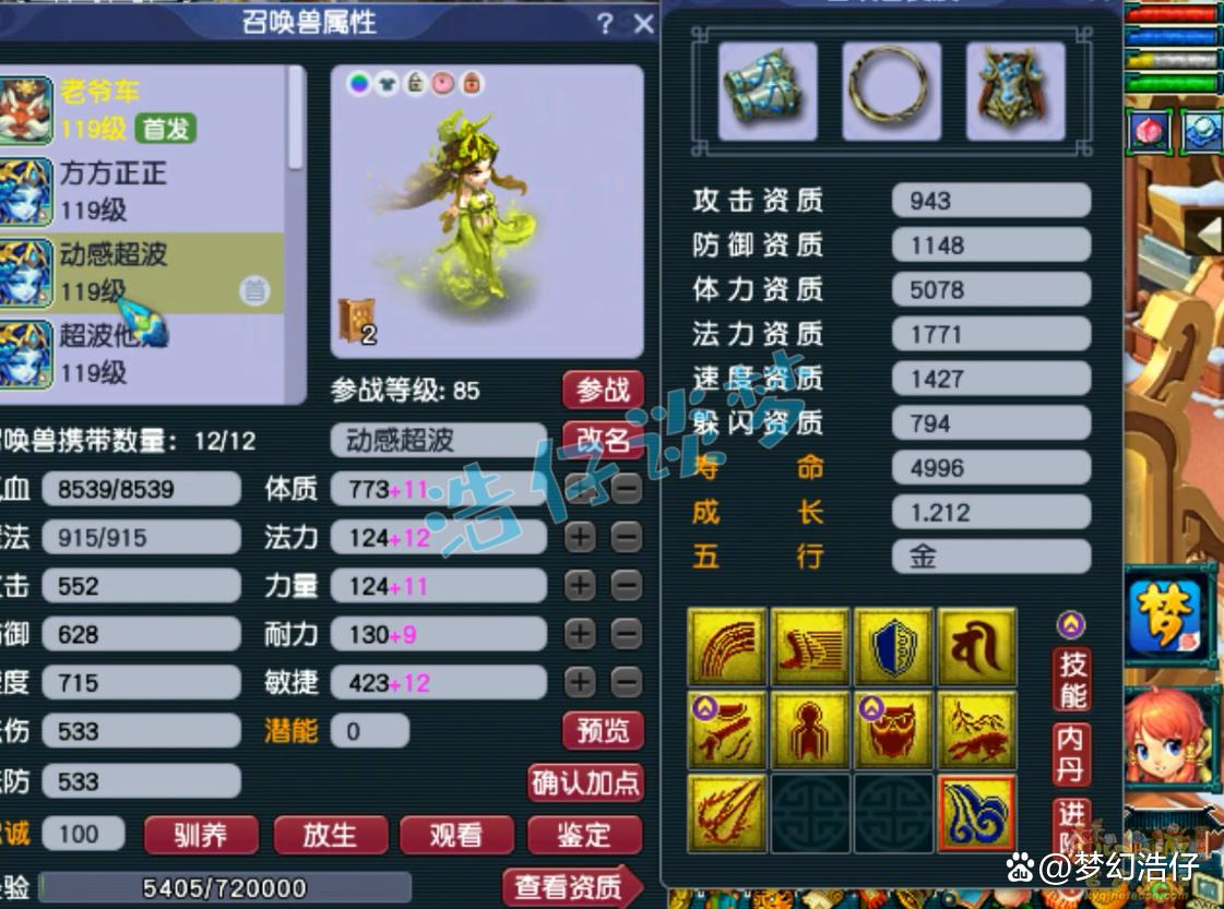 10技能净台血宠泪妖,高内丹打的是电魂闪。