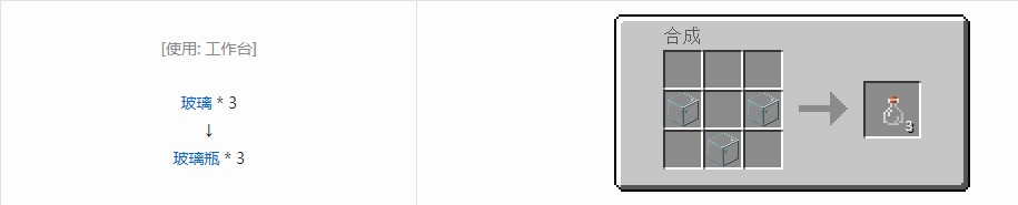 收集液体:玻璃瓶能通过使用水源或装着水的炼药锅来装满。如果通过水源来装水,水源不会有变化。然而,如果通过炼药锅来装满,炼药锅的水会减少 1/3。因此,用炼药锅装填玻璃瓶是非常低效的。除非是在下界,那样的话炼药锅就成了装填玻璃瓶的唯一方法了。