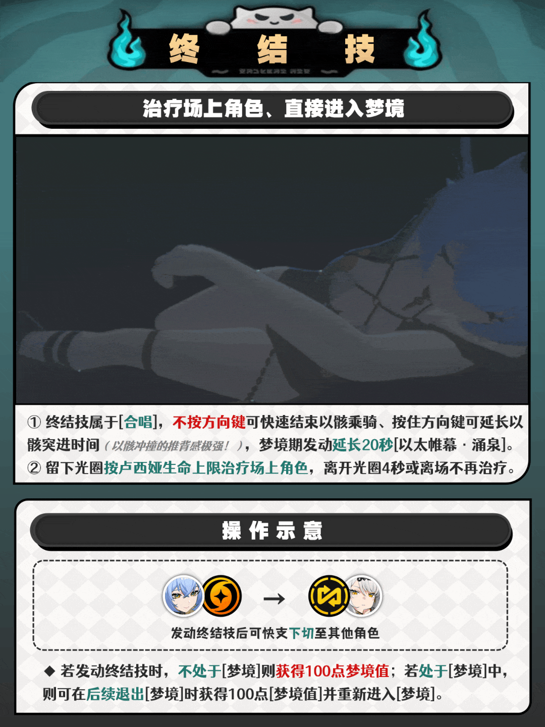 ④ 终结技:100点(梦境期间施放会保留该100点获取留至退出梦境后获得)