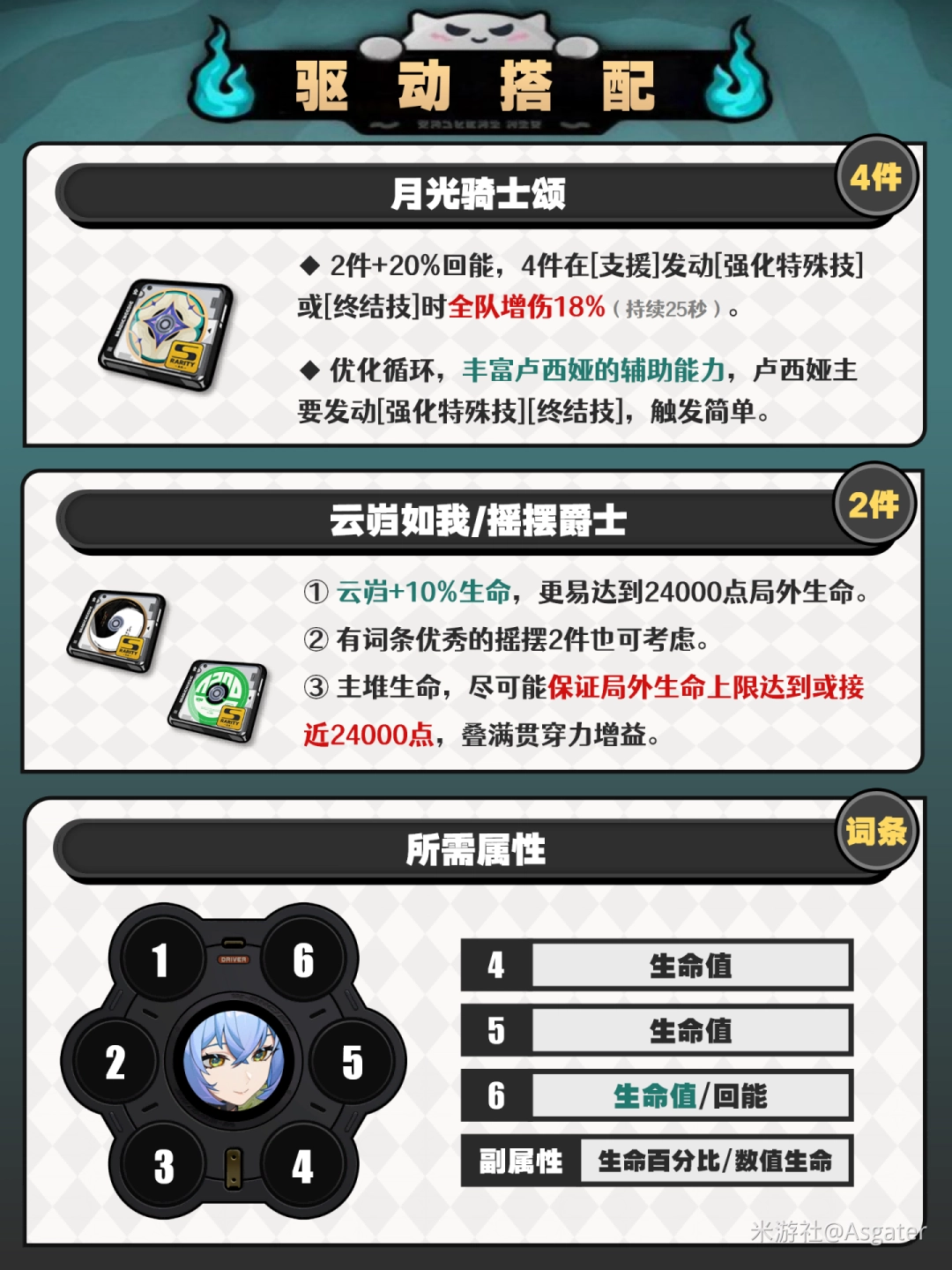 ① 上述提及的所有S、A级音擎,4/5/6号主词条均优选生命,通常不考虑回能盘。