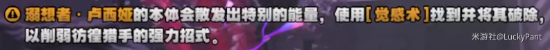 成就描述:与[彷徨猎手]作战时,在捉迷藏中找到错误的小卢西娅。