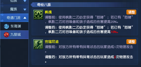 使用枫影二刃必定获得“怒哮”;若已有“怒哮”,枫影二刃对召唤兽和孩子造成的伤害提高20%。 |