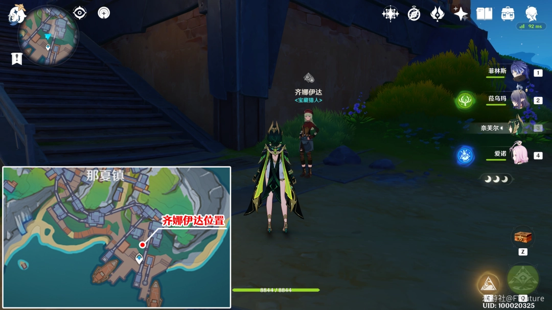 2. 齐娜伊达:位于图示位置楼梯旁转角处。