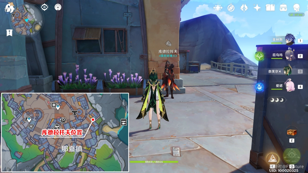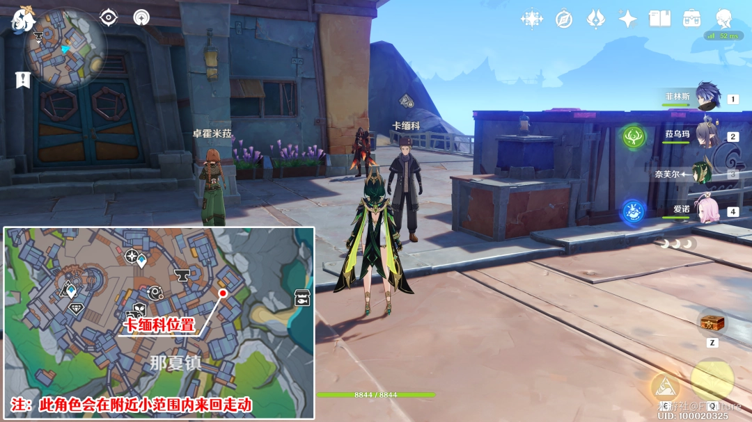 17. 卡乌妮娅:位于图示位置,冒险家协会西侧空地上,会在附近小范围内来回走动。