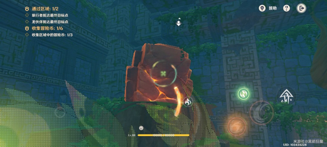 龙舔一下绿色的“6”,并站在上面,切换旅行者走过绿色平台。