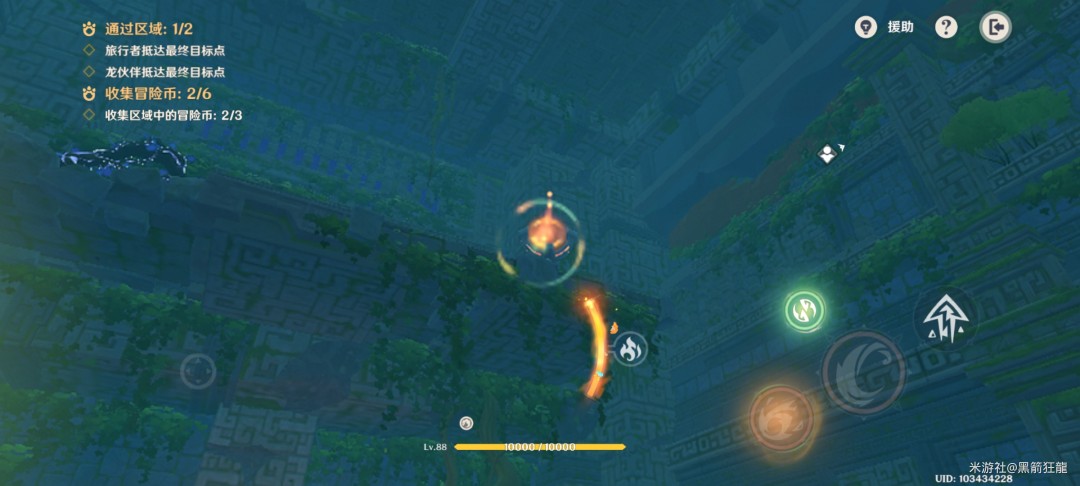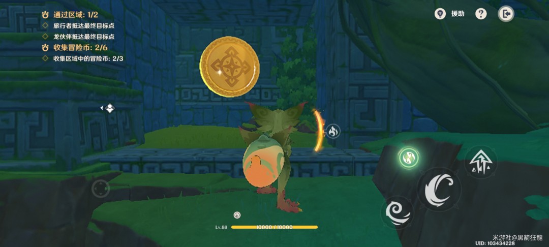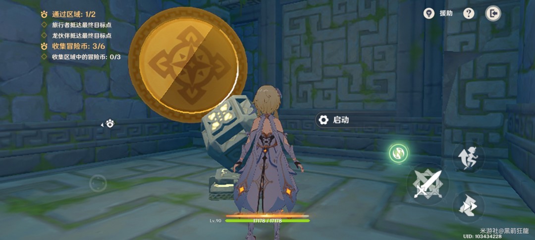 切换旅行者,右边楼梯上去拿第四个金币,并启动机关。