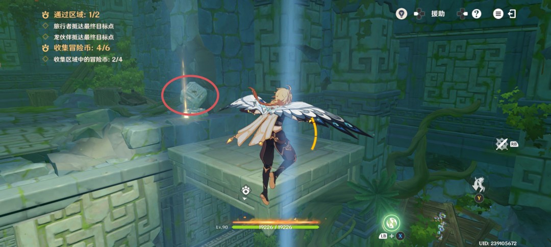 随后视角切换旅行者,点按两次跳跃键打开风之翼,并往机关的方向飞;
