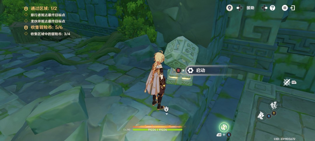 视角再次切换旅行者,与开关交互后跳到平台上即可;