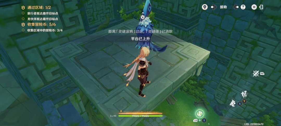 随后视角切回瞑视龙;操控瞑视龙移动到平台上等待;