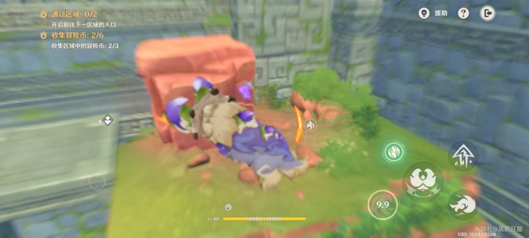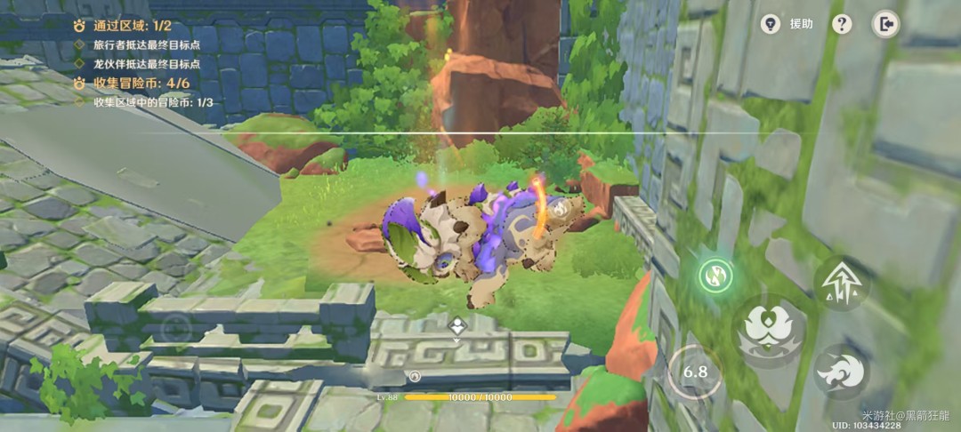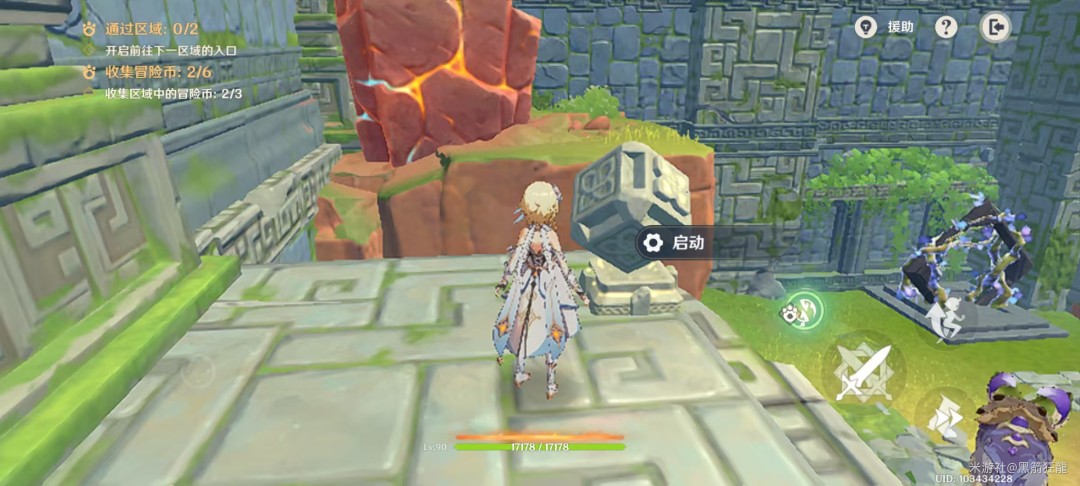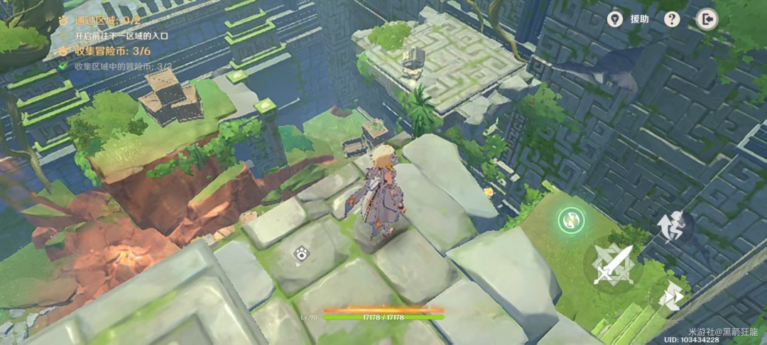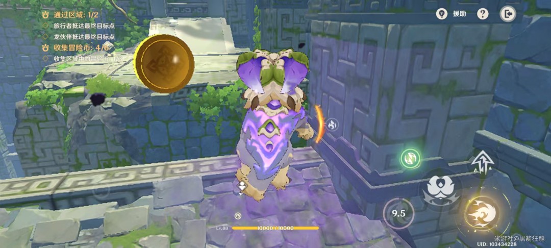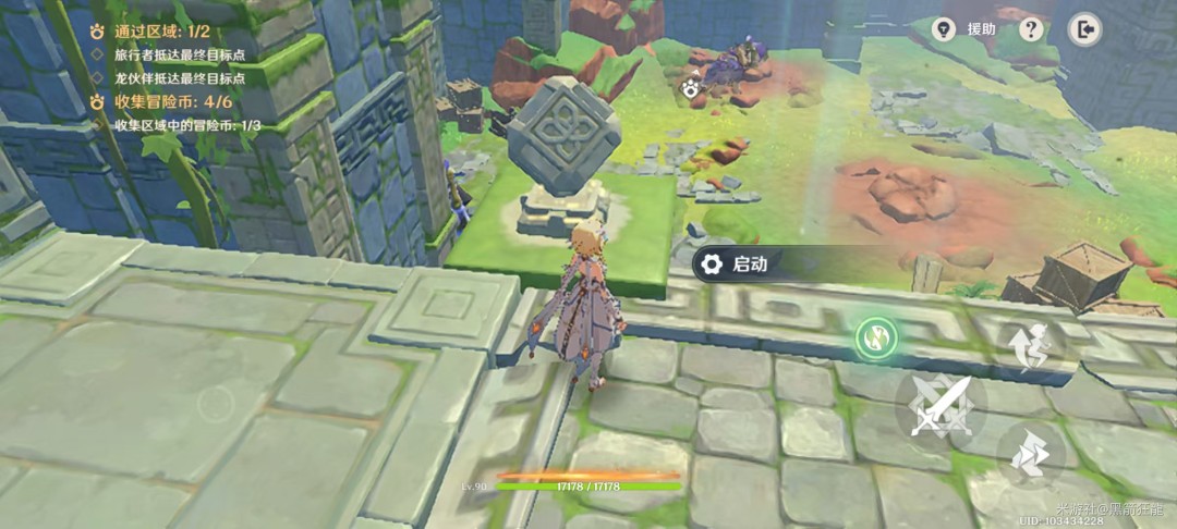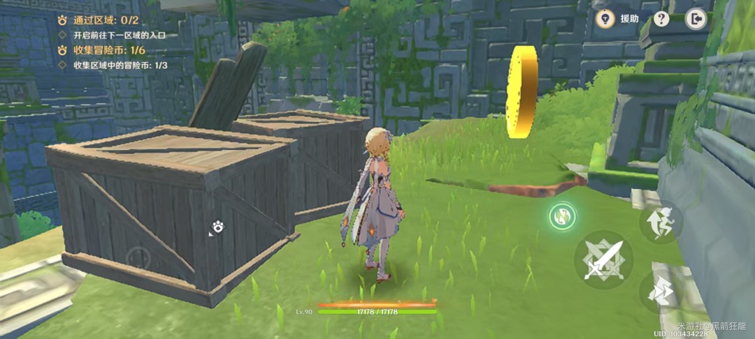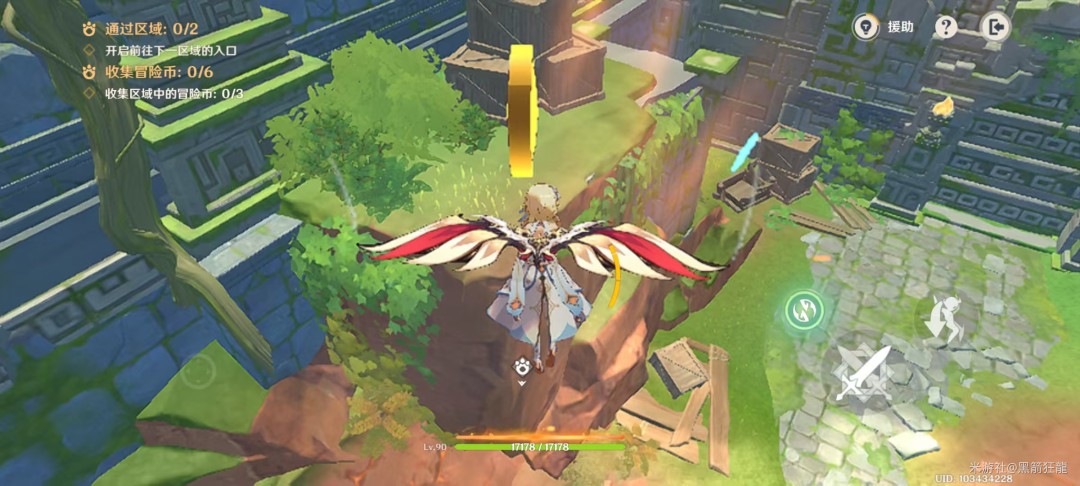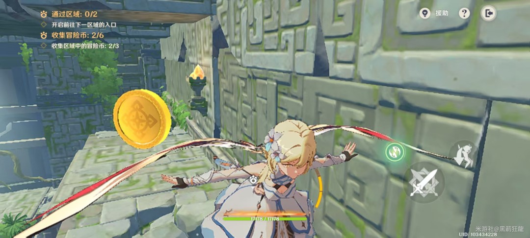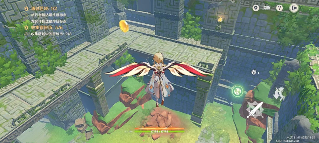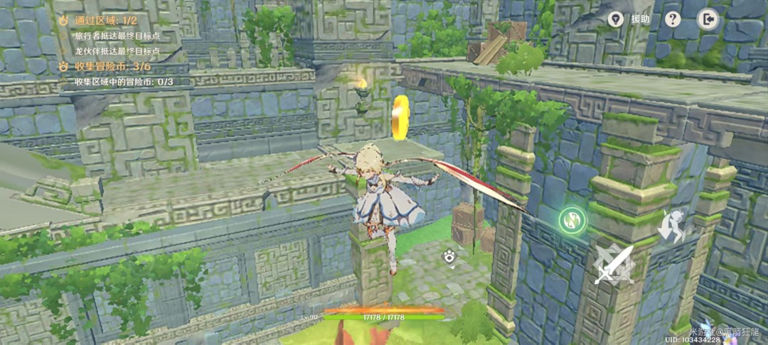 过关方法:旅行者从左边飞上去拿第一枚金币。