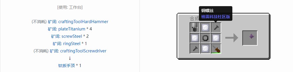 我的世界格雷科技社区版扳手顶合成表大全