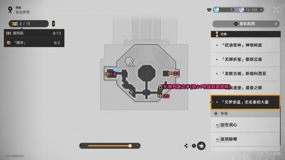 3.7「翁法罗斯」新地图『「灾梦余温」无名泰坦大墓』共有「21个战利品」。