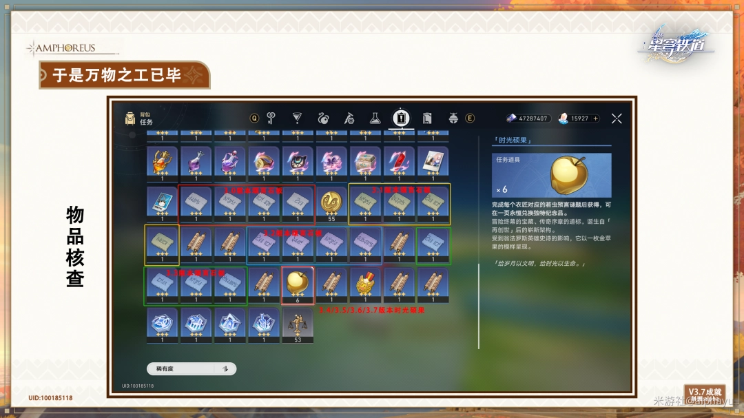 注:共260只创生若虫,18道预言谜题(背包对应16块颂言石板+6个时光硕果)